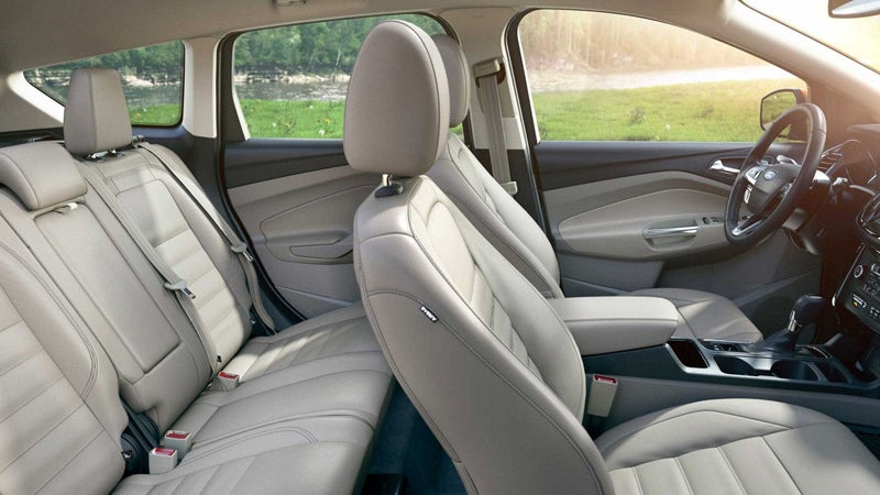 The Escape has a seating capacity of five. Its seats provide enough room and support to keep you and your passengers comfortable on long trips. Featuring a stylish dashboard and high-quality materials, its cabin is one of the most refined in its class. With its rear seats up, the SUV offers 34 cubic feet of storage space. If you fold those seats down, you'll get almost 70 cubic feet of space.The Escape comes standard with the MyKey system, six-speaker audio system, and the SYNC infotainment system. Optional features include dual-zone automatic climate control, panoramic sunroof, navigation, satellite radio, 10-speaker audio system, and the SYNC 3 infotainment system.